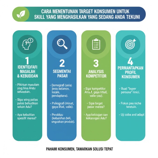 Menentukan target konsumen adalah langkah krusial bagi siapa pun yang sedang menekuni skill yang menghasilkan, baik itu desain grafis, penulisan konten, penerjemahan, digital marketing, editing video, maupun skill profesional lainnya. Tanpa target konsumen yang jelas, upaya pemasaran akan terasa melelahkan dan hasil yang diperoleh sering kali tidak maksimal. Dengan strategi yang tepat, skill yang Anda miliki dapat berkembang menjadi sumber penghasilan yang konsisten dan berkelanjutan.